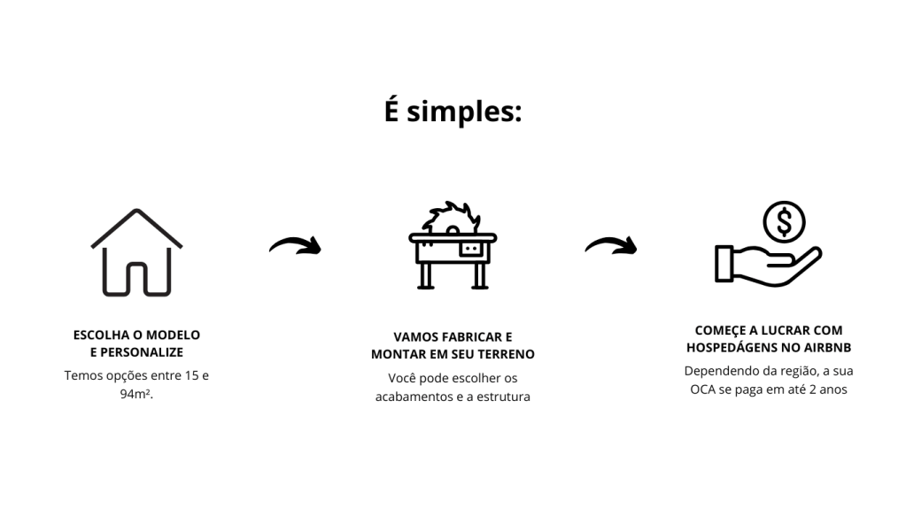 Você pode optar por receber sua OCA completa, com tudo que precisa para começar a receber seus hóspedes e lucrar em um prazo incrivelmente curto.