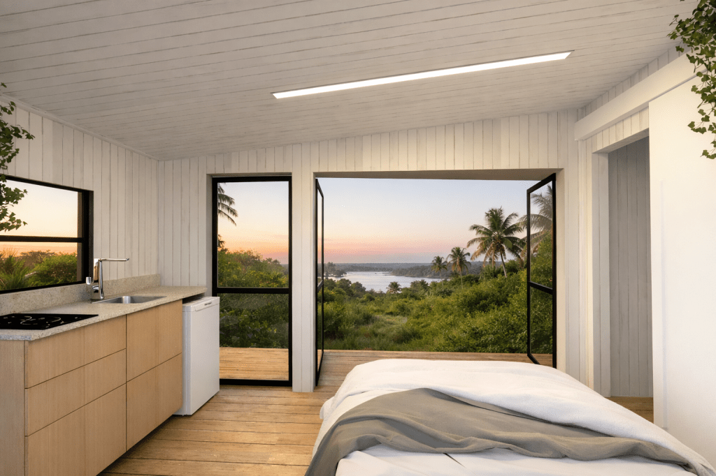 A NOMA chega pronta ao terreno e oferece tudo que o hóspede precisa para uma estadia completa. Um refúgio compacto, pensado para proporcionar experiência memorável e se destacar no Airbnb